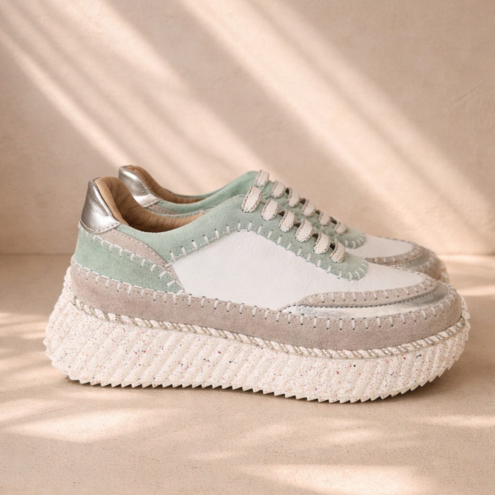 Sneaker anatomica in pelle, con un comfort eccellente per tutto il giorno. Rivestimento in pelle e tessuto, soletta removibile e suola in gomma super leggera da 5 cm