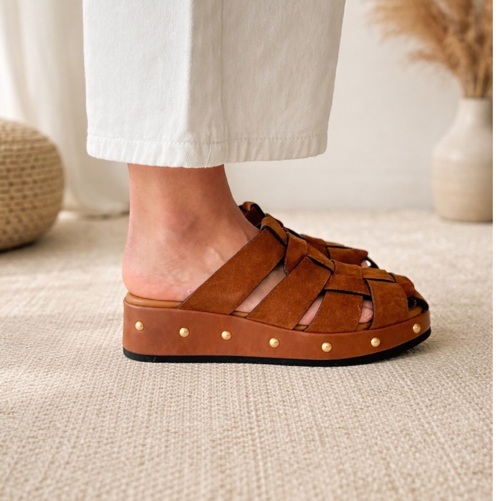 Sandali con Tomaia e Fodera in Pelle Fondo in Gomma leggera Tacco 4 cm